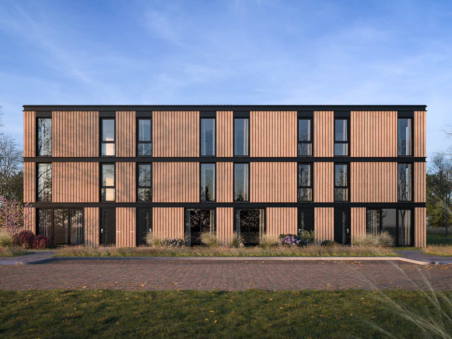 Vier woningen onder één dak, de quadrant. Door deze configuratie zit iedere woning op een hoek. Dit geeft een groot gevoel van vrijheid en ruimte in de woning.